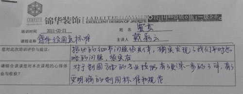 3月21日,公司在所有在編繪圖員和部分有潛力的實(shí)習(xí)生范圍中召開了一場繪圖員培訓(xùn)。本次培訓(xùn)由人力資源部牽頭,首先邀請(qǐng)了研發(fā)中心戴彩云老師對(duì)繪圖員的制圖規(guī)范和標(biāo)準(zhǔn)做了講解,對(duì)每季度繪圖員上繳作品情況也做了案例分析,其次是安排了主任設(shè)計(jì)師崔堯、高級(jí)設(shè)計(jì)師單清和堂杰工作室首席設(shè)計(jì)師張笑做了培訓(xùn)分享。最后由人力資源包總闡述了設(shè)計(jì)部儲(chǔ)備人才的“雛鷹計(jì)劃”的具體實(shí)施步驟及考核方案。優(yōu)秀的繪圖員作為錦華內(nèi)部的設(shè)計(jì)師儲(chǔ)備人員,將會(huì)在錦華這個(gè)優(yōu)秀的平臺(tái)上得以平穩(wěn)成長,錦華需要的是有志向、有方法、有心態(tài)的務(wù)實(shí)性人才,只要踏實(shí)認(rèn)真一步一個(gè)腳印的遵循公司的成長體系,相信,“雛鷹”終將會(huì)成長為一只在錦華天空中自由翱翔“雄鷹”!