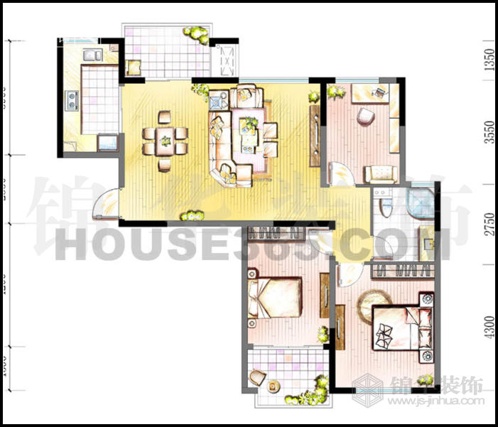 (3)2個(gè)臥室空間比例比較協(xié)調(diào),便于利用